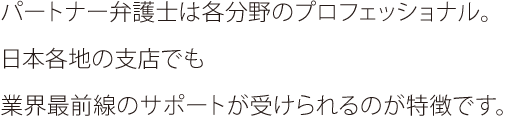 どのようなご相談でも必ず複数の弁護士が担当する方針を取っており、各支店でも東京本社との緊密な連携によって、質の高い第一線のサポートをお約束いたします。